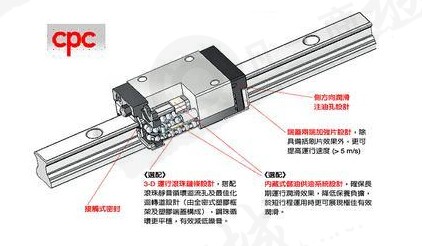 由于CPC直線導軌特殊的束制結構設計,可同時承受上、下、左、右方向的負荷,不像滑動導引在平行接觸面方向可承受的側向負荷較輕,易造成機臺運行精度不良。