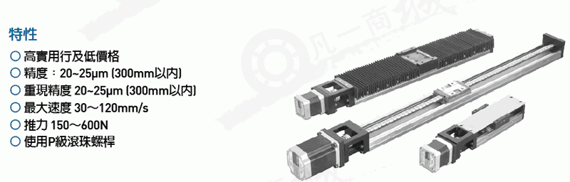 1)多工設計:整合驅動用的滾珠螺桿及導引用U型軌道,除提供精密直線運動,也能搭配多功能配件。在導入多用途的應用設計時非常方便,也能達成高精密線性傳動的需求。