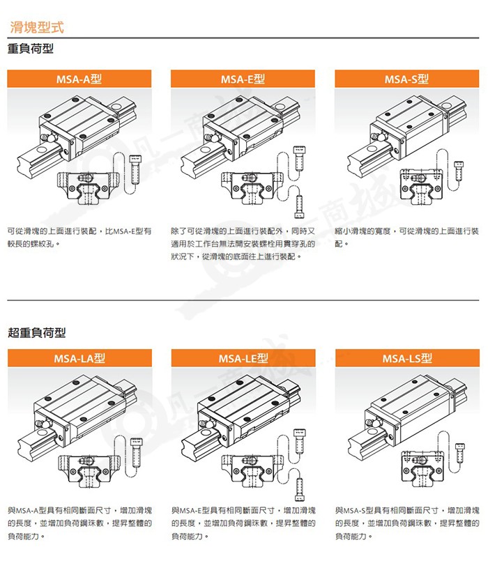 銀泰PMI直線導軌產品簡介,銀泰直線導軌MSA系列特點