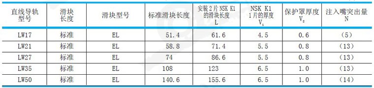 NSK直線導軌LW系列型號: LAW,L1W,LW17EL,LW21EL,LW27EL,LW35EL,LW50EL,LAW17EL,LAW21EL,LAW27EL,LAW35EL,LAW50EL,L1W17,L1W21,L1W27,L1W35,L1W50