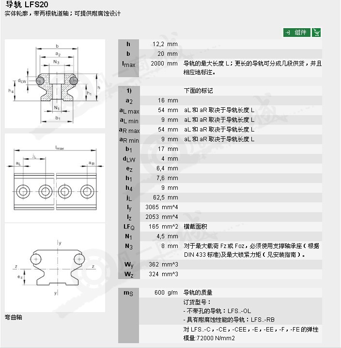 INA導軌滾輪型單導軌系統六排直線循環球軸承及導軌組件KUSE是球滾動體直線導軌中負載能力和剛性最高的。包括至少一個滿滾珠滑塊,一根INA導軌,內置的端部彈性刮屑片,滑塊底部密封條和塑料添塞片。